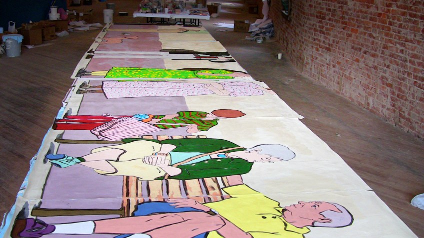 Waiting for the Reading and Columbia Train mural, 2009 Published January 19, 2013 at 1920 × 1080 in Mural titled Waiting for the Reading and Columbia Train, 2009 Almost ready to be pasted onto the walls.