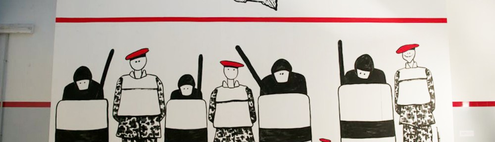 Homage to the Egyptian Revolution II, 2011 The Changing Room Exhibition, curated by Aida Eltorie Mixed Media Installation (Acrylic ink and paint on wall, and White stoneware figurines) Spazio Qubi Gallery Torino Italy 2011