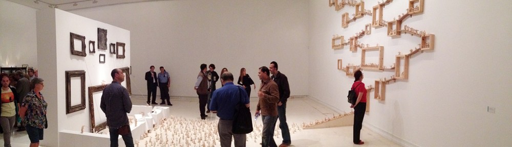 Mixed-media installation (fired clay, wood, and ready made frames).