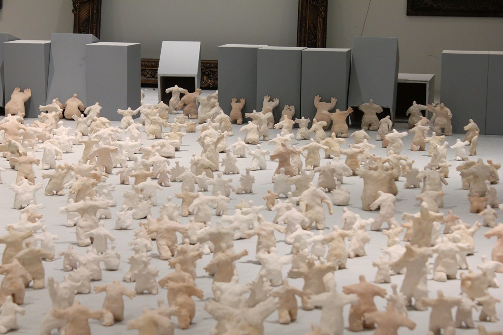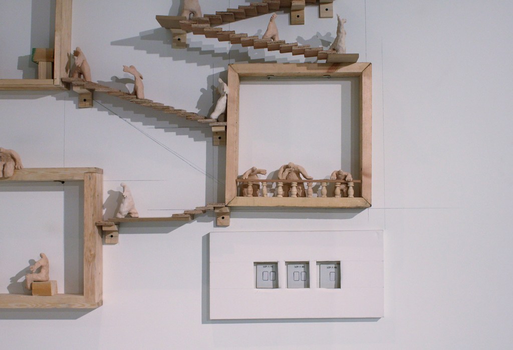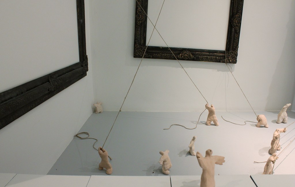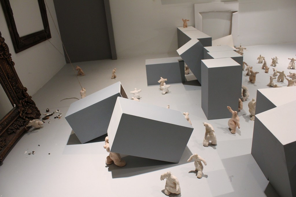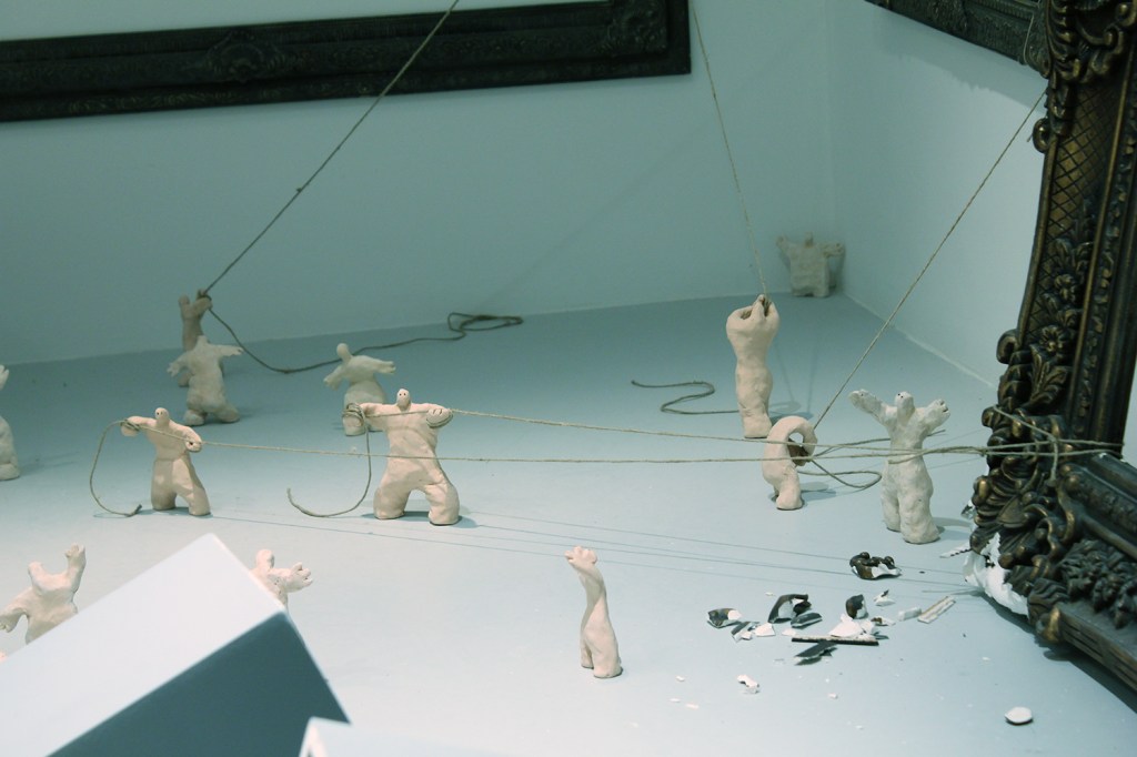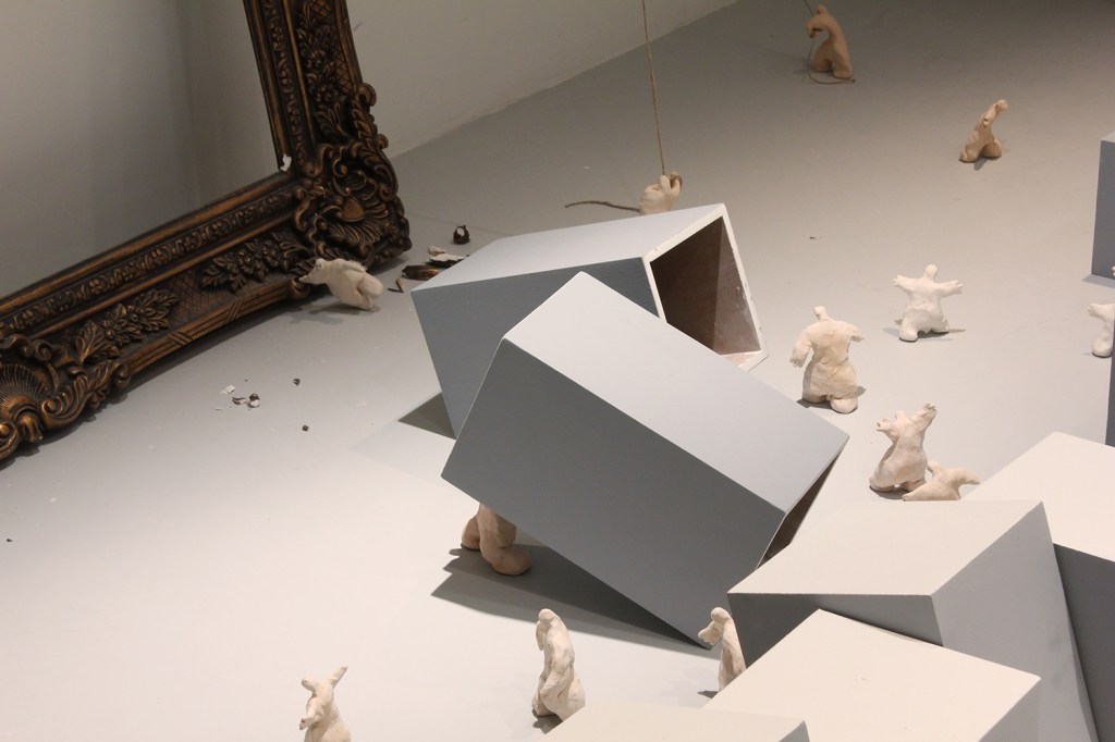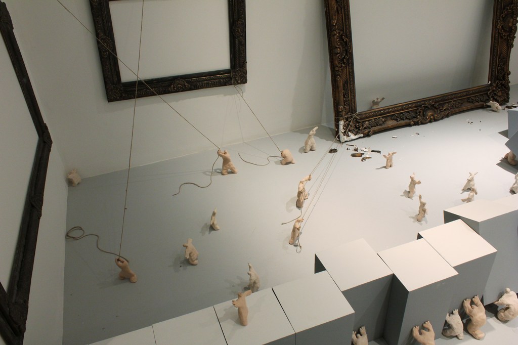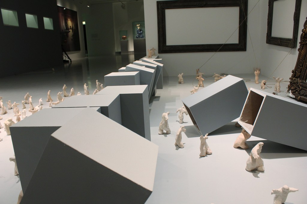 Mixed-media installation (fired clay, wood, and ready made frames). Tea with Nefertiti exhibition, curated by Sam Bardaouil and Till Fellrath. Commissioned by Mathaf: the Arab Museum of Modern Art in Doha, Qatar, 2012.