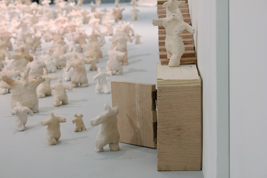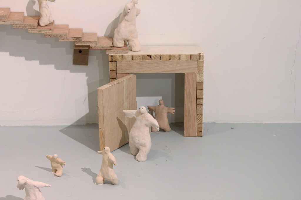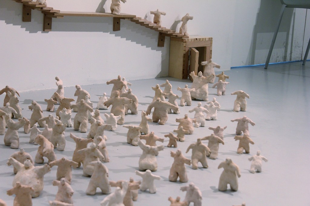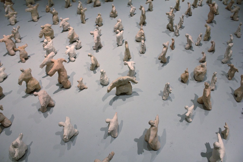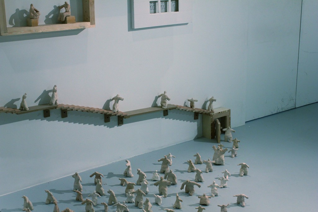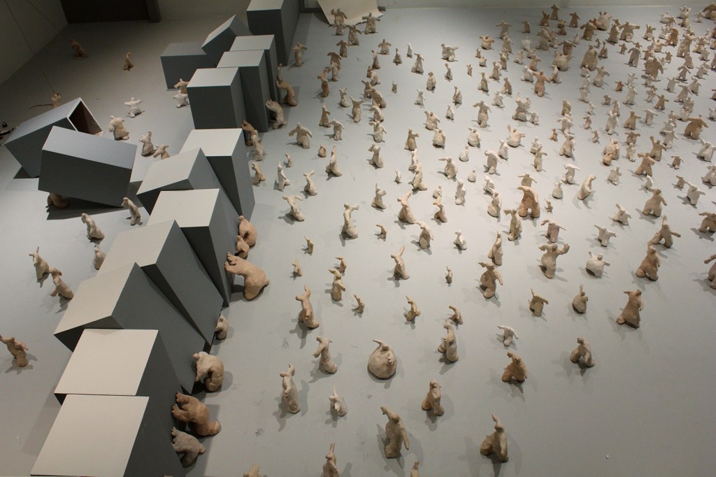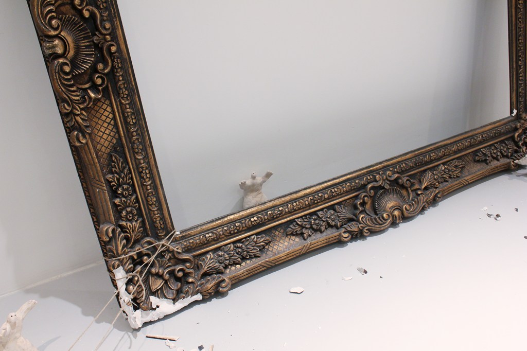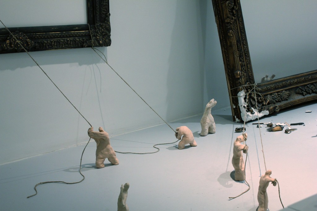 Mixed-media installation (fired clay, wood, and ready made frames). Tea with Nefertiti exhibition, curated by Sam Bardaouil and Till Fellrath. Commissioned by Mathaf: the Arab Museum of Modern Art in Doha, Qatar, 2012.