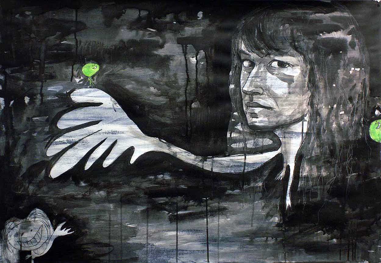 A Woman Waving Her Hand Published February 28, 2013 at 1250 × 863 in Paintings and Drawings, 2007 – 2008 Acrylic, India ink, and charcoal on paper, 55 cm x 110 cm, 2007.