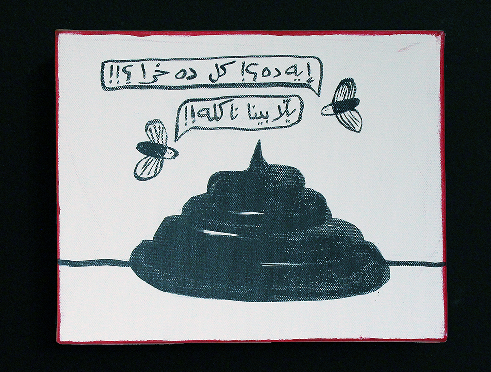 Published February 26, 2014 at 1000 × 758 in RGB (1) Fly 1: “Oh my God! All this crap?!” Fly 2: “Let’s eat it!” India ink and acrylic paint on Canvas 30 cm X 24 cm