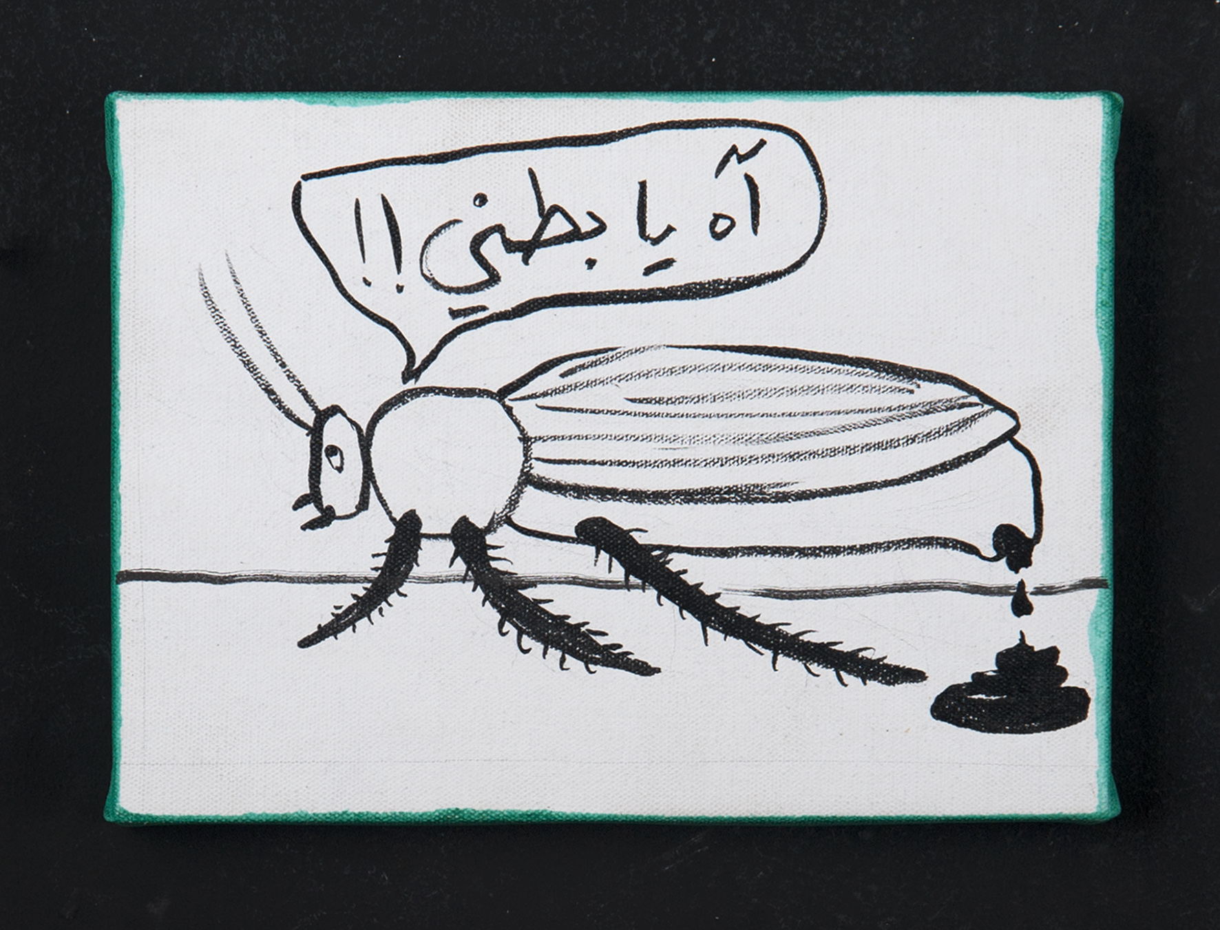 Published January 28, 2018 at 1772 × 1351 in RGB (1) “My stomach is killing me!!” India ink and acrylic paint on canvas 23 cm X 16 cm