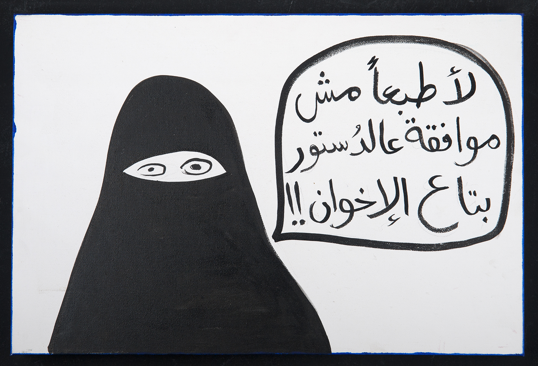 Published August 18, 2016 at 1772 × 1204 in RGB (1) “Of course I’m against the Muslim Brotherhood’s constitution!!” India ink and acrylic paint on canvas 60 cm X 40 cm