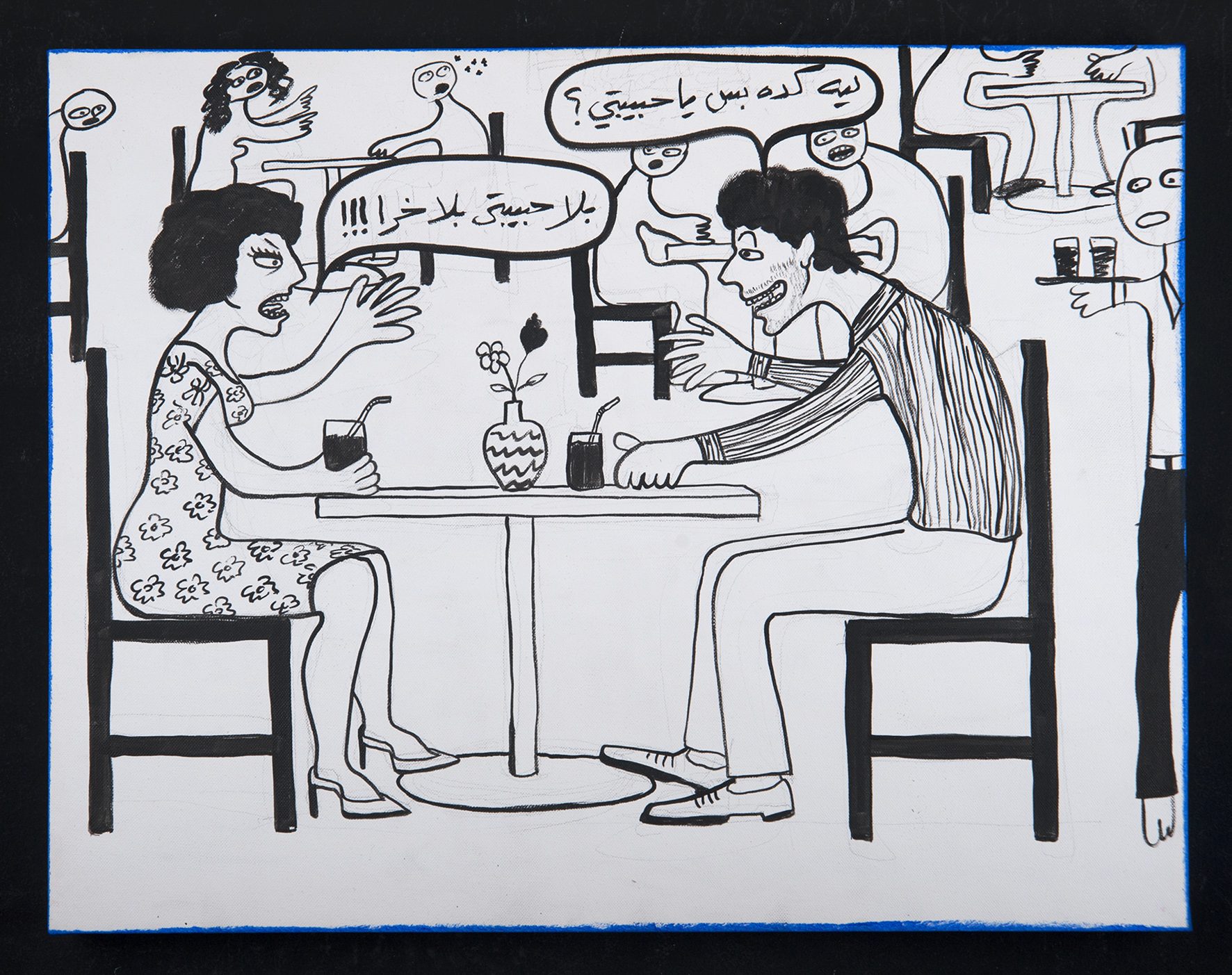 Published August 18, 2016 at 1772 × 1403 in RGB (1) – Man: “Why are you saying that, sweetheart? – Woman: “Sweetheart my ass!!!” India ink and acrylic paint on canvas 65 cm X 50 cm