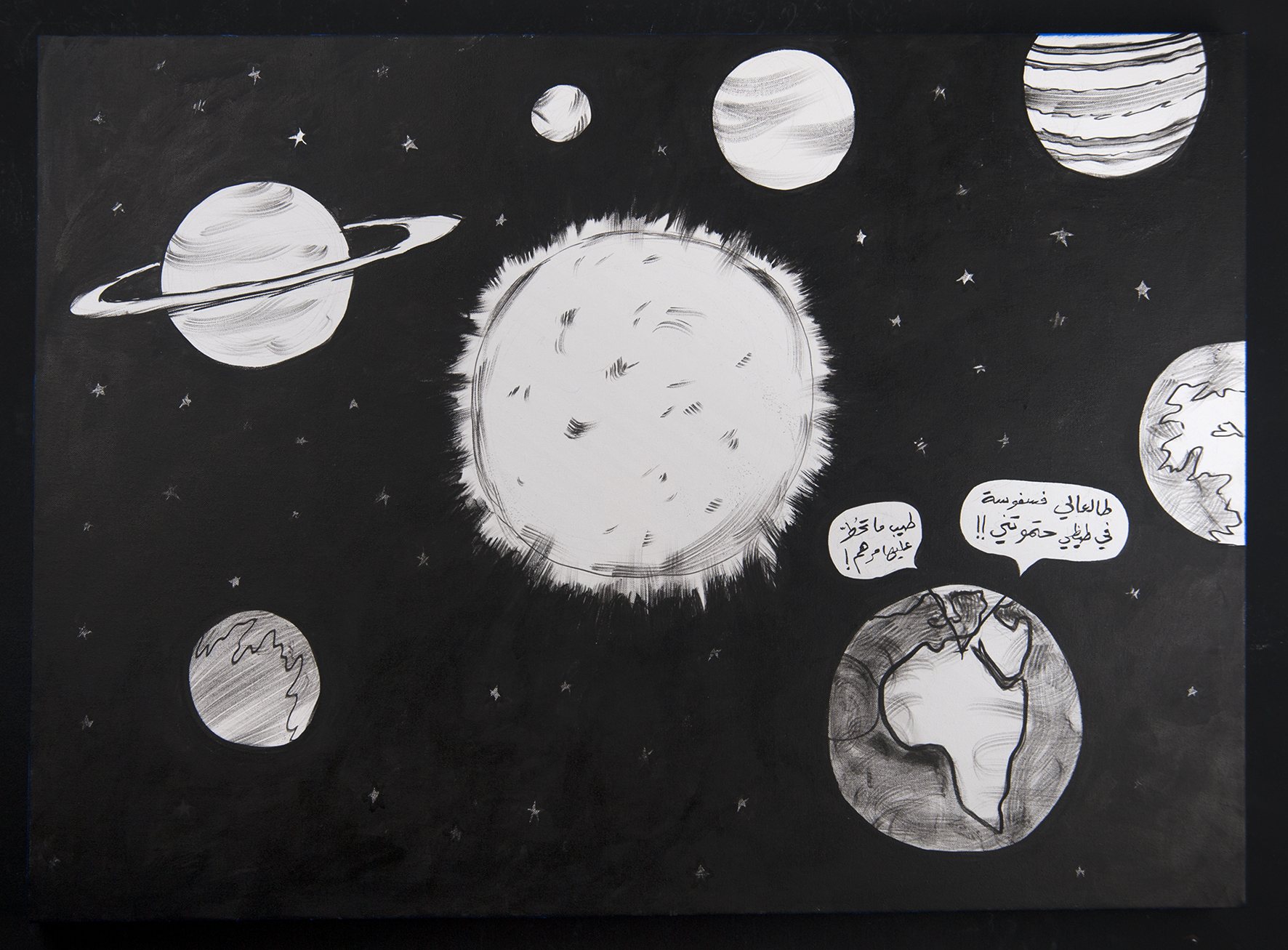 Published August 18, 2016 at 1772 × 1307 in RGB (1) – Person 1: “I have a zit on my ass and it’s killing me!” – Person 2: “You should put some ointment on it!” India ink and acrylic paint on canvas, 110 cm X 80 cm