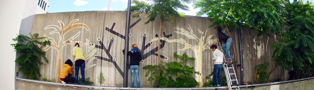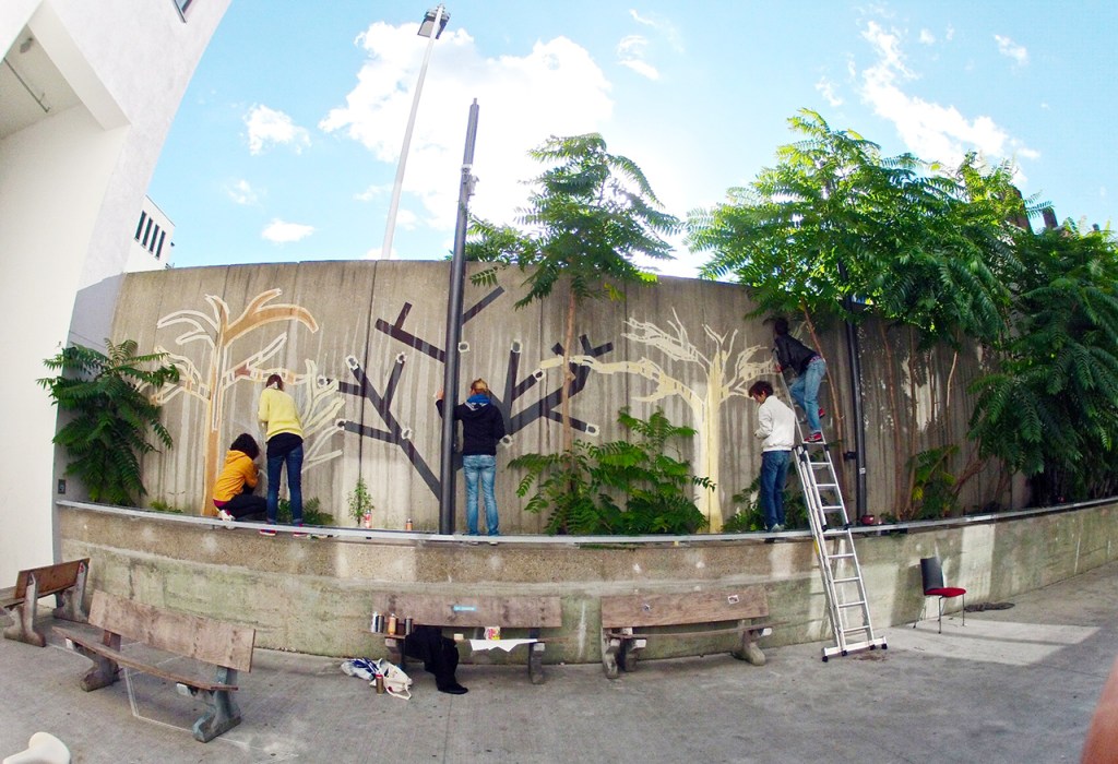 For 6 days, Yousri conducted a workshop aiming to engage participants into the concept of creating site-specific murals/graffiti. Through various visual exercises and activities, the participants designed and executed collectively a site-specific mural at Theater Aufbau Kreuzberg. They titled it “the Four Seasons”.