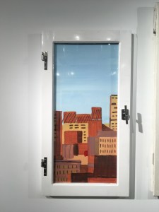 Left panel, 98 x 53 cm Photographic prints on archival matte paper, wood, glass, metal.