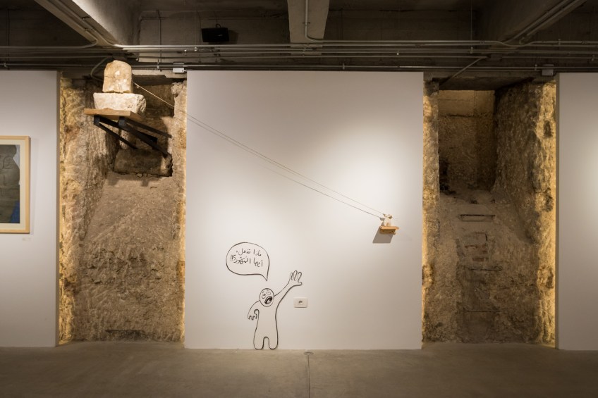 Don’t Do It! Published February 29, 2020 at 5584 × 3723 in The Art Guide, 2020 “What are you doing, fool?!” Figure 48 x 56 cm, speech bubble 40 x 35 cm, ceramic figurine 11 x 9 cm, wood, fired white stoneware, limestone, acrylic paint. Magic Window group exhibition, Shelter Art Space, Alexandria, Egypt, 2020.