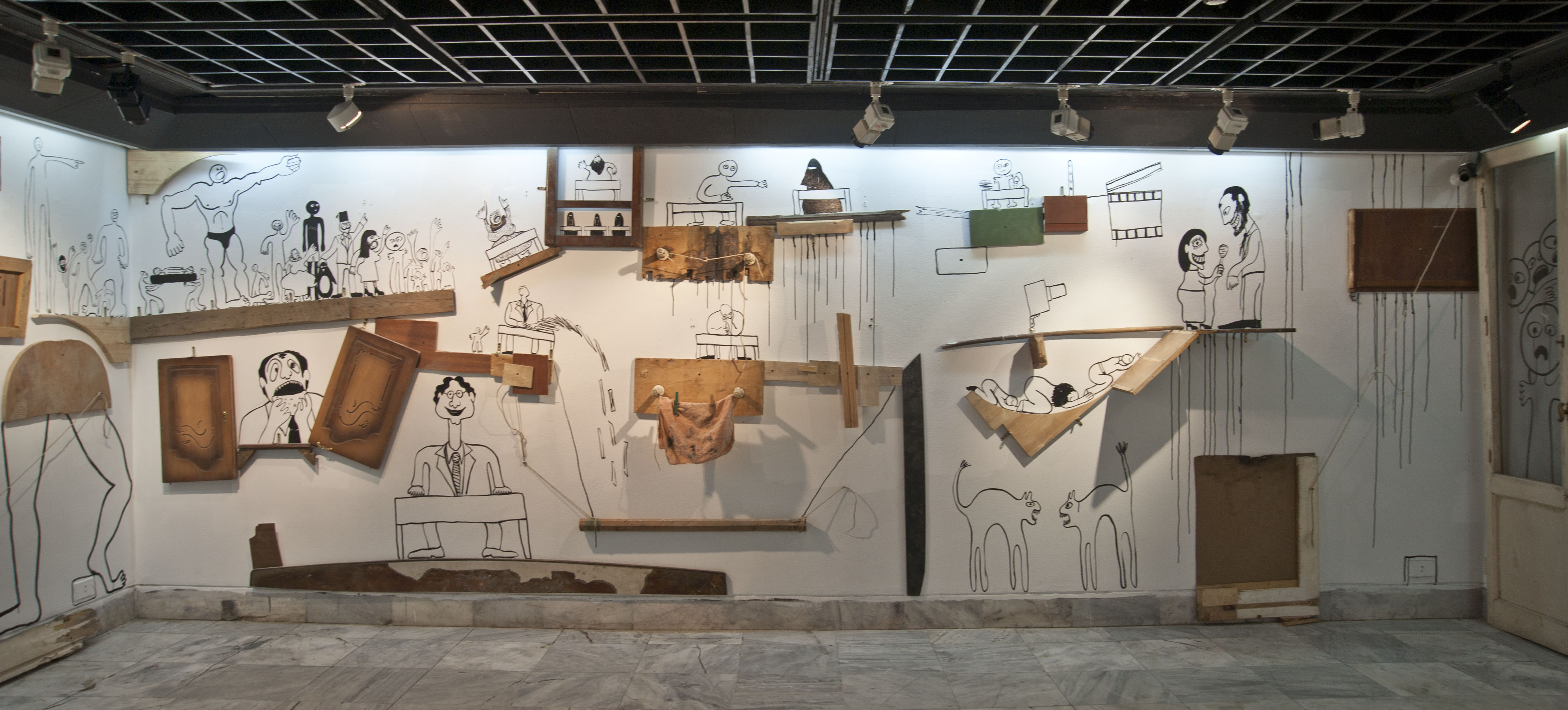 The Official Institution, left wall. Published March 21, 2013 at 4256 × 1926 in The Official Institution, 2013 Mixed media site-specific installation. 2013 Photo courtesy of Adham Bakri