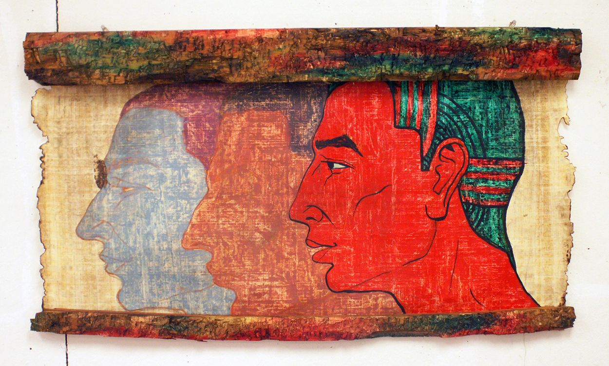 The Arrival Published January 19, 2013 at 1250 × 751 in the yousri scrolls, 2008 Oil on papyrus and carved wood, 64 cm X 90 cm, 2008.